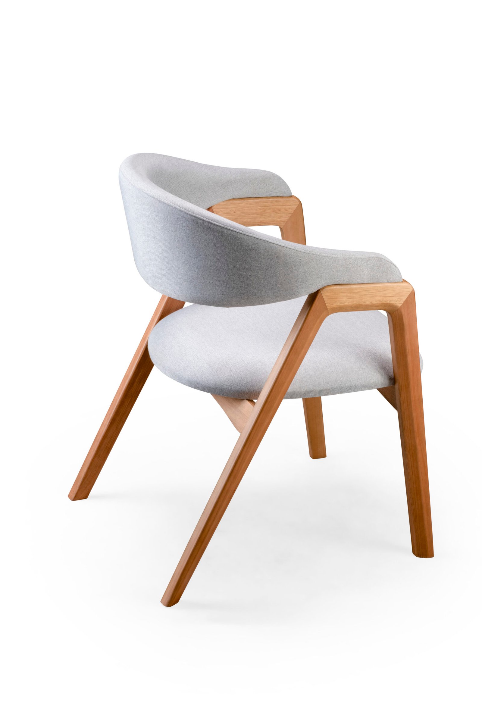 A Cadeira Org une ergonomia e sofisticação em um design que valoriza o equilíbrio entre estrutura e conforto. Sua base em madeira maciça com ângulos precisos sustenta um corpo estofado de curvas suaves e acolhedoras, criando uma presença marcante e, ao mesmo tempo, leve. O encosto contínuo envolve o usuário, proporcionando suporte ideal e sensação de aconchego.