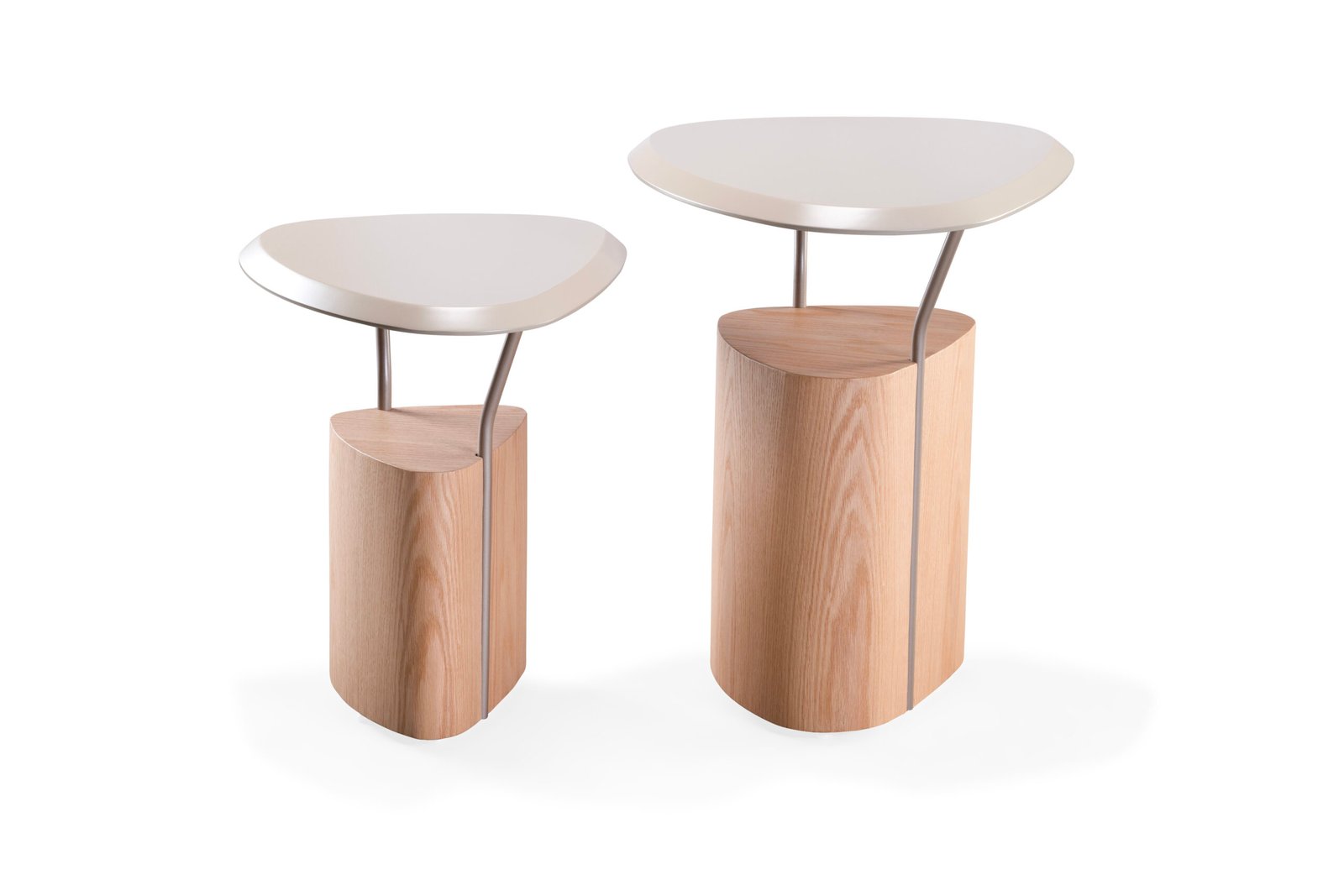 A Mesa de Apoio Tríade é uma peça de design que explora o contraste entre solidez e leveza. Sua base orgânica em madeira maciça sustenta um tampo metálico de bordas suaves, ligado por hastes delgadas que criam uma sensação de suspensão e fluidez. O resultado é uma composição equilibrada, contemporânea e cheia de personalidade.