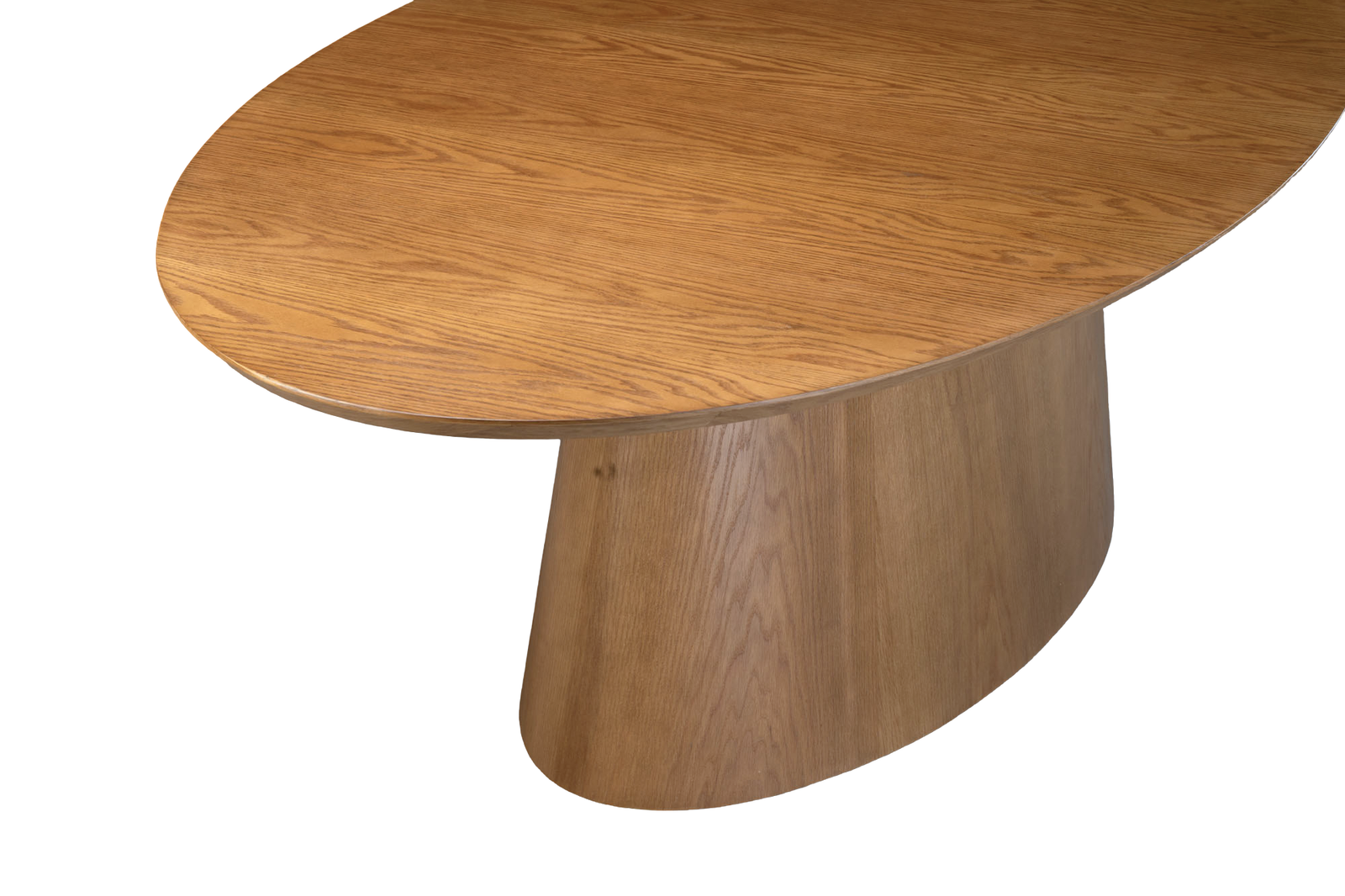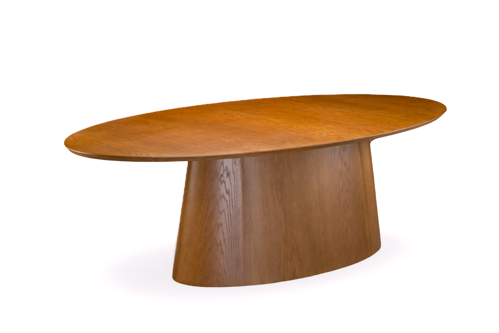 A Mesa de Jantar Tríade Oval é uma peça que une equilíbrio visual e pureza formal. Seu design é definido por um tampo oval de linhas suaves que repousa sobre uma base sólida em formato orgânico, criando uma presença marcante e escultural. Produzida inteiramente em madeira, valoriza a textura natural e a fluidez das curvas, transmitindo acolhimento e sofisticação.